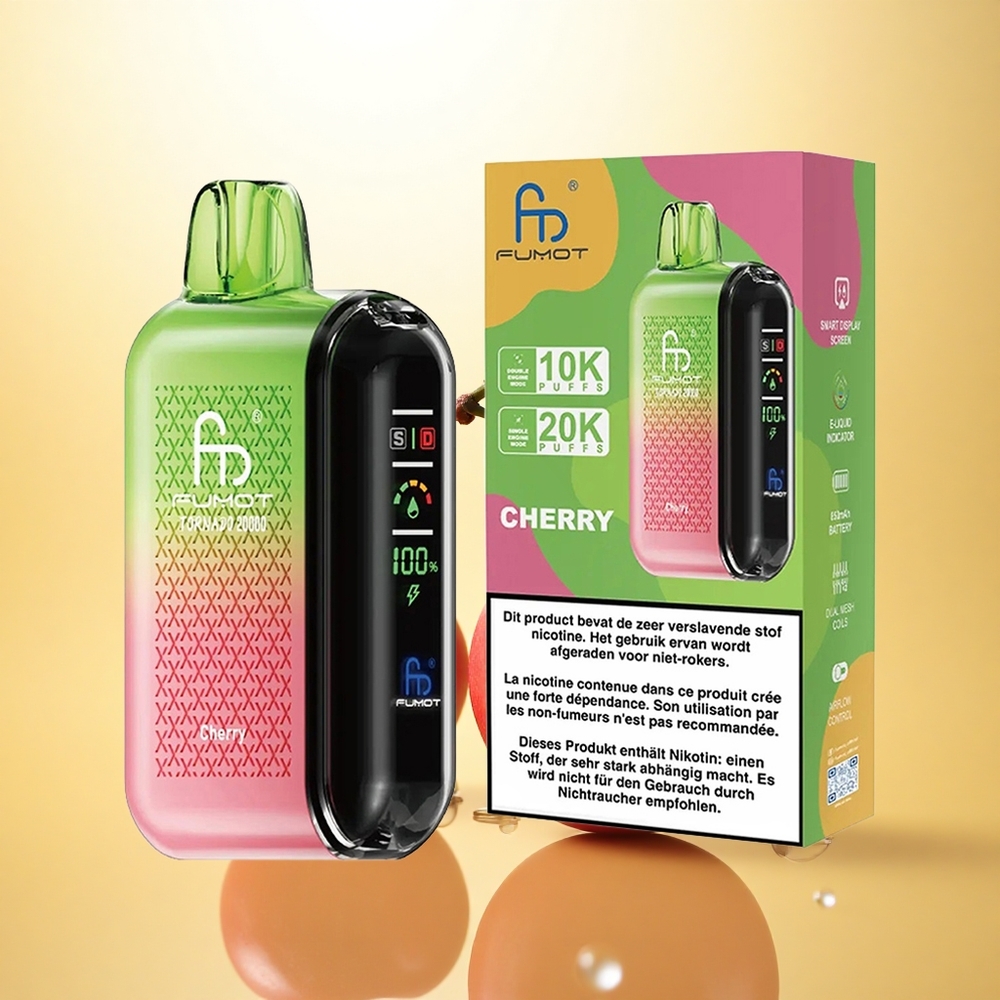 Fumot Tornado 20000 Puffs Kirsebær Dual Mesh Coil Smart Display